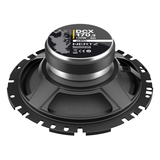 With its 51 mm (2,0 in.) maximum depth Hertz DCX 170.3 car audio coaxial, is a “flat” model optimized for installation in a vehicle’s door and/or other reduced spaces, without giving up on acoustic reproduction quality. A Neodymium magnet, PEI dome tweeter, built-in crossover, TPU (Thermoplastic polyurethane) surround, a copper voice coil wound on a Conex former and painstaking care in its build ensures performance surpassing other components within the same category.