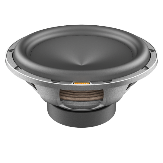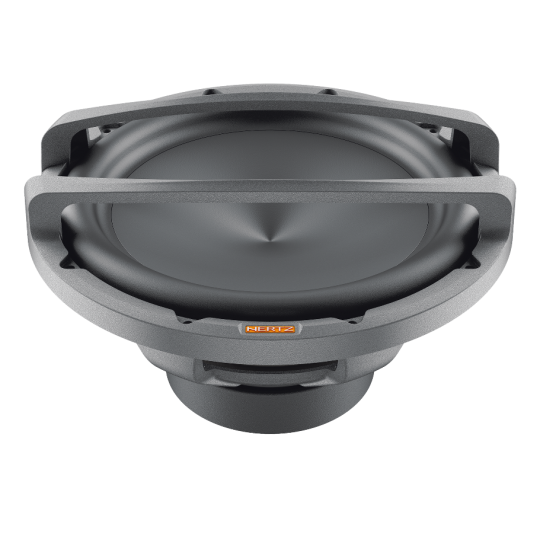 Outstanding performance in a compact size, this is the target of Mille Pro car audio subwoofers. On the strength of its know-how acquired with Mille Legend, the R&D team has optimized the production process to offer the “Hertz Sound Experience” to a wider audience using part of the technologies and materials of the flagship line. The MP 300 D4.3 cone is made by pressing paper pulp with the injection of mineral powders, the same construction technique used for Legend. The V-cone® profile increases rigidity, allowing the cone to function like a piston. Surround materials consist of high-purity IIR-butyl rubber. Like the Legend ML2000.3 and ML2500.3, the Mille PRO subwoofers are built with Boundary Free Surround technology allowing for a greater emission surface with equal diameter, generating higher sound pressure. The compact 6-spoke aluminum alloy anti-resonant basket is the same as the top model ML 2500.3 and contributes to the subwoofer’s mechanical damping, being absolutely transparent to the sound. The 65-mm 4-layer voice coil is higher than 60 mm and wound in a TIL-P former, thus delivering high linear displacement. The 4 Ω + 4 Ω DVC impedance configuration improves versatility to match any amplifier system. The air cooling and decompression system avoids the need for a centre hole on the bottom plate with three advantages: