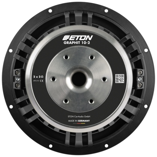 Legends cannot be invented, they are born. Our best systems and subwoofer series combine our know-how from over 35 years of loudspeaker construction with the best materials. Designed and manufactured in Germany. This is pure quality that you can see and above all hear! Thus, the new GRAPHIT series embodies all our quality awareness, our demand for sound and performance. This series impresses with its design and performance: 2 x 2 Ohm dual voice coil, extremely termic loadable. Extremely strong ferrite magnet with high quality manufactured iron parts with ventilation holes and large molded core hole for optimal ventilation and avoid compression effects. New carbon fleece sandwich diaphragm, highly torsion resistant. Newly developed connection terminals and new aluminum die-cast basket. A subwoofer in a class of its own for extremely fast, dynamic punches, hard-hitting attacks and deeply impressive bass passages! Manufacturing and development Made in Germany.