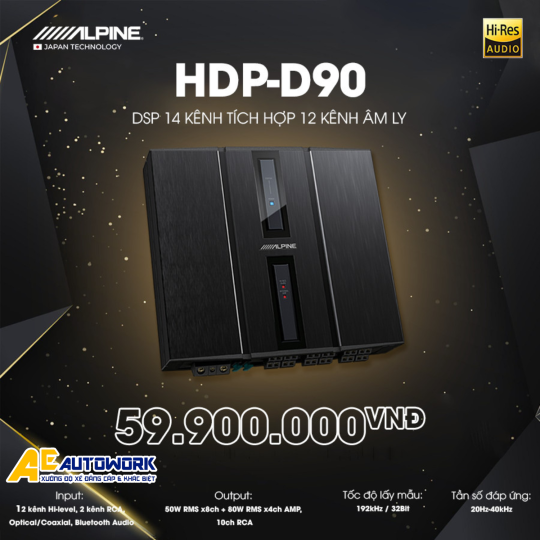Nâng tầm trải nghiệm âm thanh trên xe hơi của bạn lên một đẳng cấp hoàn toàn mới với HDP-D90. Đây là một sản phẩm vượt trội đến từ Alpine, thuộc dòng Alpine Status, được phát triển dựa trên công nghệ của hệ thống AlpineF#1Status danh tiếng. HDP-D90 không chỉ là một bộ xử lý tín hiệu số (DSP) mạnh mẽ với 14 kênh mà còn tích hợp bộ amply 12 kênh hiệu suất cao, mang đến chất lượng âm thanh Hi-Res chân thực, chi tiết và sống động như một buổi thu âm chuyên nghiệp ngay trong không gian xe của bạn.