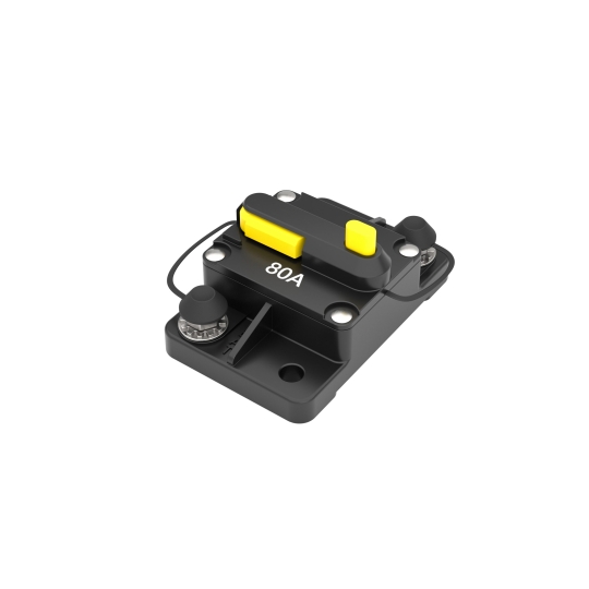 Reliable 80 Amp circuit breaker for powering amplifiers, lighting systems, or onboard devices. Built for long-term resistance to saltwater, heat, and shock.