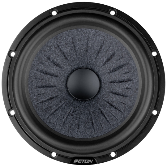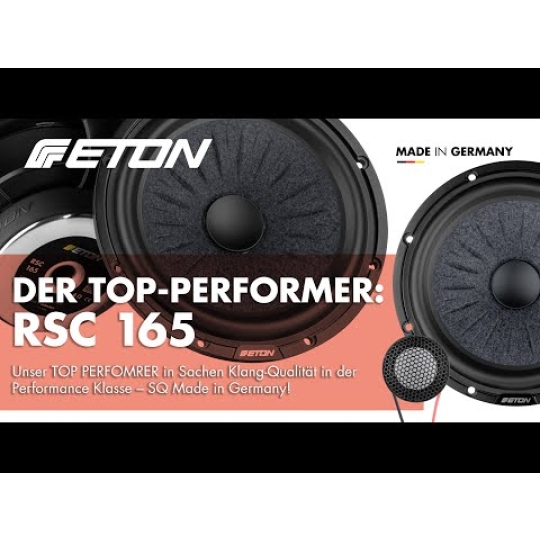 ETON RSC 165 2-way 165 mm (6.5") component system is the new TOP performer in its class: especially due to the newly developed, rib-stiffened aramid fiber fleece foam sandwich membrane. This new high-tech material is a proprietary ETON development and is particularly advantageous in terms of sound performance. The specially constructed cone is produced in several layers using a specially developed manufacturing process - particularly light and rigid and therefore ideal for use as a bass/midrange driver. The very flat die-cast aluminum basket in ETON's typical double strut design is particularly torsion-resistant. The large voice coil and the powerful ferrite magnet with polished pole and base plate drive the woofer powerfully. The set also includes two newly developed 25 mm aluminum-ceramic tweeters with coupling volume and RCFS technology, separated by an easy-to-install cable crossover with level adjustment (0/+2 dB). Our new high performance system made in Germany!
